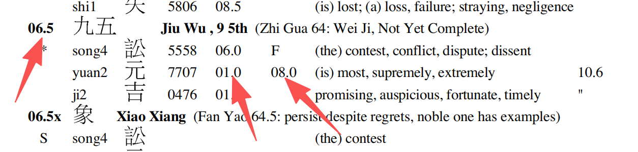 At Hexagram 06, Line 5, the gloss is "(is) most, supremely, extremely". Next stop: 08.0.